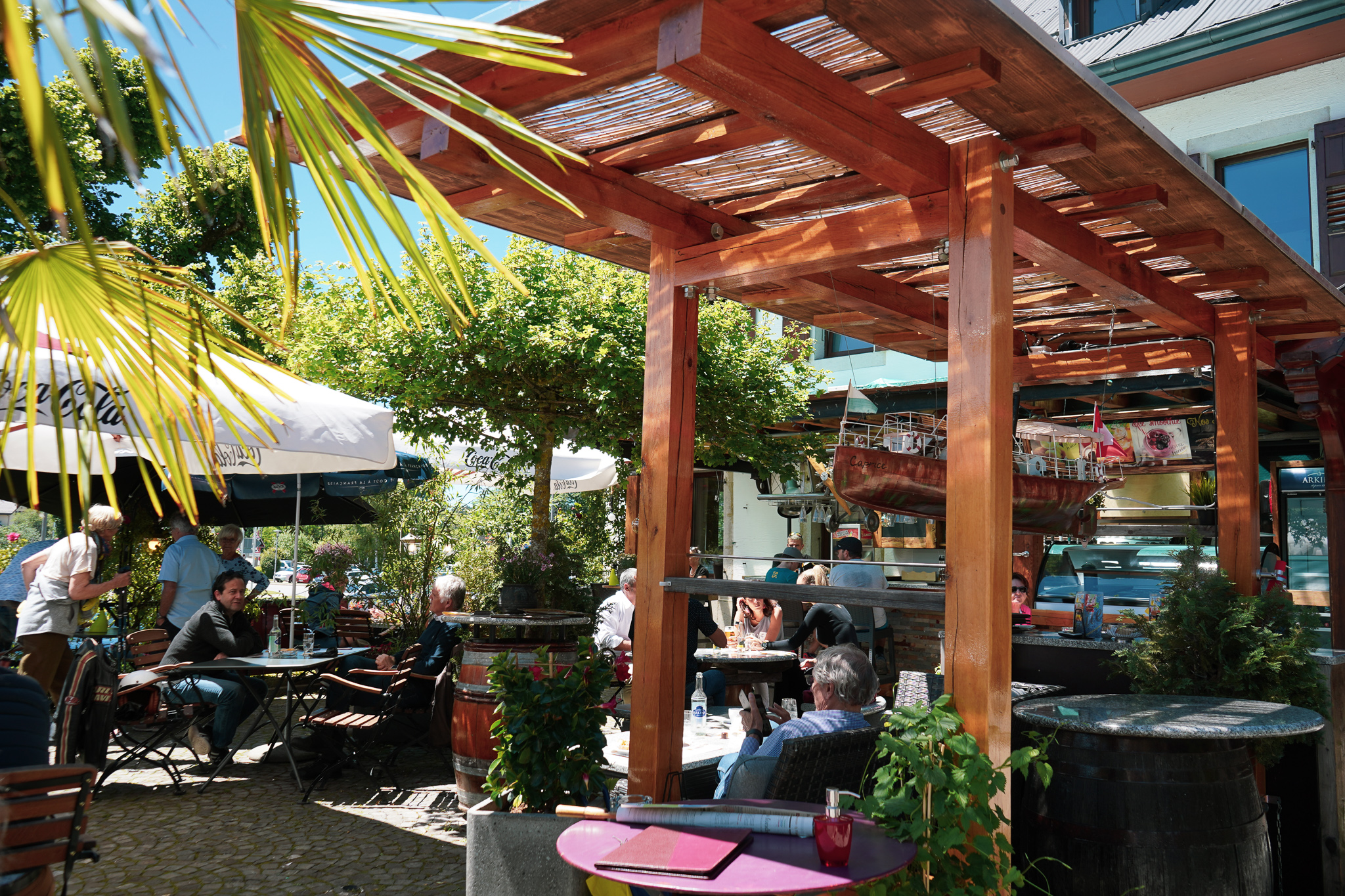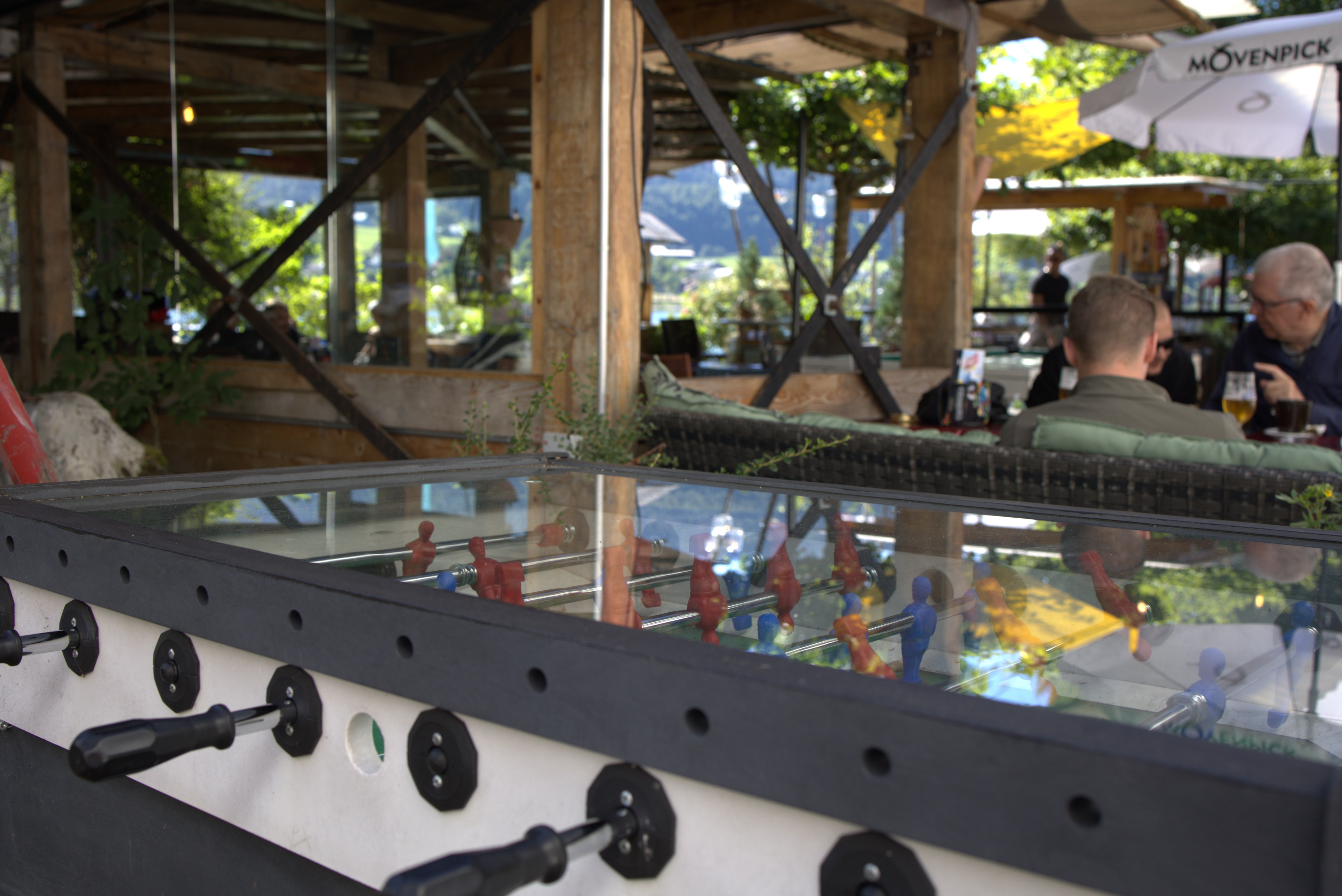 Savourez votre repas sur la terrasse ensoleillée avec vue sur le Lac de Joux.